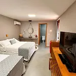 Die Zimmer im Hotel Pousada Alto Mar verfügen über einen Balkon und einen Essbereich sowie eine Klimaanlage für Ihren Komfort. Zur Ausstattung des Badezimmers gehören eine getrennte Toilette und eine Dusche und ein Haartrockner und Handtücher. Von diesen klimatisierten Zimmern aus können Sie auch einen Ausblick auf den Ozean genießen.